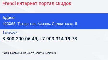 Frendi, интернет-портал скидок по адресу 420066, Татарстан, Казань, Солдатская, 8 в дальнейшем Организация, размещена в следующих категориях: