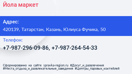 Йола-маркет по адресу 420139, Татарстан, Казань, Юлиуса Фучика, 50 в дальнейшем Организация, размещена в следующих категориях: