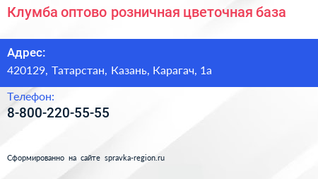 Клумба, оптово-розничная цветочная база по адресу 420129, Татарстан, Казань, Карагач, 1а в дальнейшем Организация, размещена в следующих категориях: