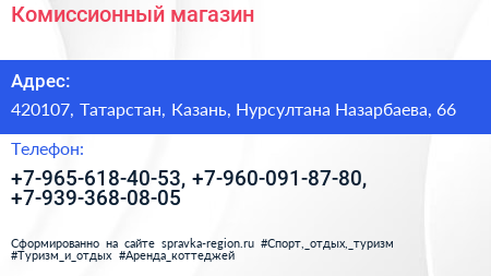 Комиссионный магазин по адресу 420107, Татарстан, Казань, Нурсултана Назарбаева, 66 в дальнейшем Организация, размещена в следующих категориях: