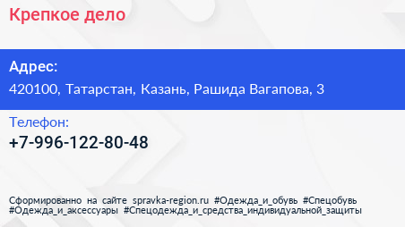 Крепкое дело по адресу 420100, Татарстан, Казань, Рашида Вагапова, 3 в дальнейшем Организация, размещена в следующих категориях: