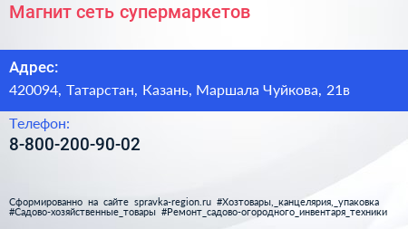 Магнит, сеть супермаркетов по адресу 420094, Татарстан, Казань, Маршала Чуйкова, 21в в дальнейшем Организация, размещена в следующих категориях: