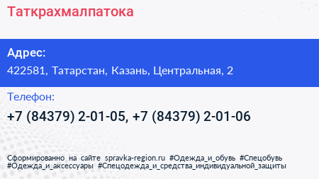 Расстояние от центра города до организации по самому короткому пути 28.5 км., объявление находиться в справочнике Казани (Татарстан), т.к осуществляет деятельность в этом городе.