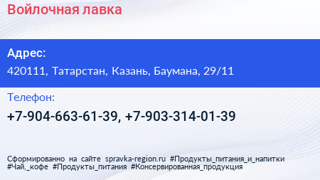 Войлочная лавка по адресу 420111, Татарстан, Казань, Баумана, 29/11 в дальнейшем Организация, размещена в следующих категориях: