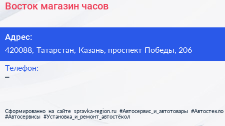 Восток, магазин часов по адресу 420088, Татарстан, Казань, проспект Победы, 206 в дальнейшем Организация, размещена в следующих категориях: