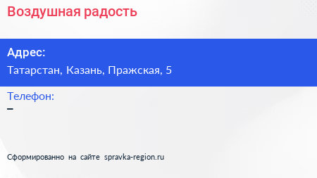 Воздушная радость по адресу Татарстан, Казань, Пражская, 5 в дальнейшем Организация, размещена в следующих категориях: