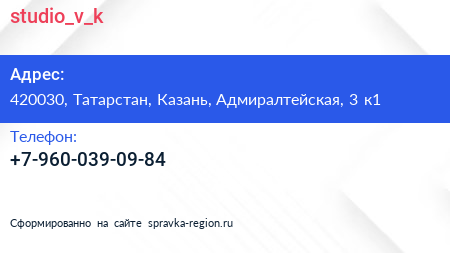 @studio_v_k по адресу 420030, Татарстан, Казань, Адмиралтейская, 3 к1 в дальнейшем Организация, размещена в следующих категориях: