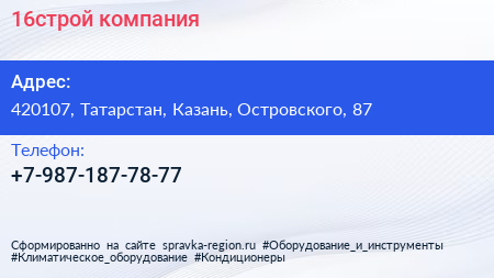 16строй, компания по адресу 420107, Татарстан, Казань, Островского, 87 в дальнейшем Организация, размещена в следующих категориях: