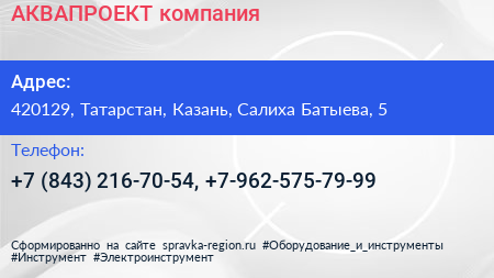 АКВАПРОЕКТ, компания по адресу 420129, Татарстан, Казань, Салиха Батыева, 5 в дальнейшем Организация, размещена в следующих категориях: