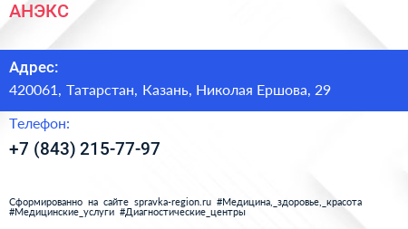 АНЭКС по адресу 420061, Татарстан, Казань, Николая Ершова, 29 в дальнейшем Организация, размещена в следующих категориях: