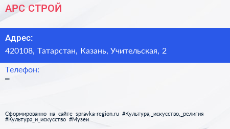 АРС СТРОЙ по адресу 420108, Татарстан, Казань, Учительская, 2 в дальнейшем Организация, размещена в следующих категориях: