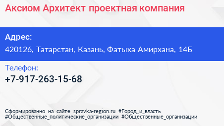 Аксиом Архитект, проектная компания по адресу 420126, Татарстан, Казань, Фатыха Амирхана, 14Б в дальнейшем Организация, размещена в следующих категориях: