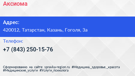 Аксиома по адресу 420012, Татарстан, Казань, Гоголя, 3а в дальнейшем Организация, размещена в следующих категориях: