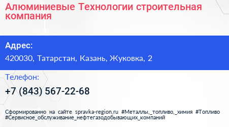 Алюминиевые Технологии, строительная компания по адресу 420030, Татарстан, Казань, Жуковка, 2 в дальнейшем Организация, размещена в следующих категориях: