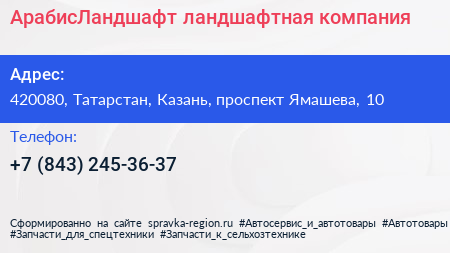 АрабисЛандшафт, ландшафтная компания по адресу 420080, Татарстан, Казань, проспект Ямашева, 10 в дальнейшем Организация, размещена в следующих категориях: