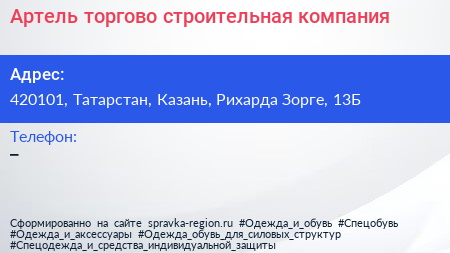 Артель, торгово-строительная компания по адресу 420101, Татарстан, Казань, Рихарда Зорге, 13Б в дальнейшем Организация, размещена в следующих категориях: