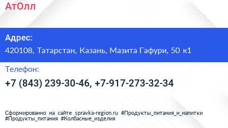 АтОлл по адресу 420108, Татарстан, Казань, Мазита Гафури, 50 к1 в дальнейшем Организация, размещена в следующих категориях:
