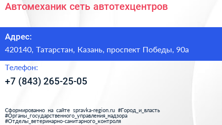 Автомеханик, сеть автотехцентров по адресу 420140, Татарстан, Казань, проспект Победы, 90а в дальнейшем Организация, размещена в следующих категориях: