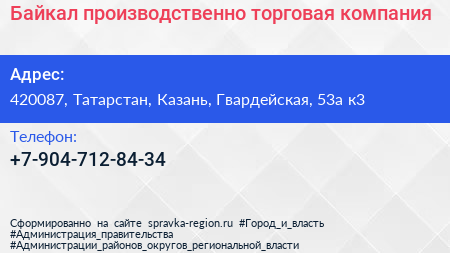 Байкал, производственно-торговая компания по адресу 420087, Татарстан, Казань, Гвардейская, 53а к3 в дальнейшем Организация, размещена в следующих категориях: