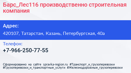 Барс_Лес116, производственно-строительная компания по адресу 420107, Татарстан, Казань, Петербургская, 40а в дальнейшем Организация, размещена в следующих категориях: