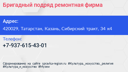 Бригадный подряд, ремонтная фирма по адресу 420029, Татарстан, Казань, Сибирский тракт, 34 к4 в дальнейшем Организация, размещена в следующих категориях: