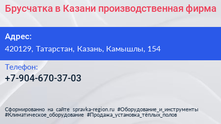 Брусчатка в Казани, производственная фирма по адресу 420129, Татарстан, Казань, Камышлы, 154 в дальнейшем Организация, размещена в следующих категориях: