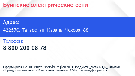 Буинские электрические сети по адресу 422570, Татарстан, Казань, Чехова, 88 в дальнейшем Организация, размещена в следующих категориях: