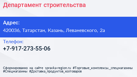 Департамент строительства по адресу 420036, Татарстан, Казань, Леваневского, 2а в дальнейшем Организация, размещена в следующих категориях: