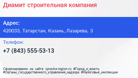 Диамит, строительная компания по адресу 420033, Татарстан, Казань, Лазарева, 3 в дальнейшем Организация, размещена в следующих категориях: