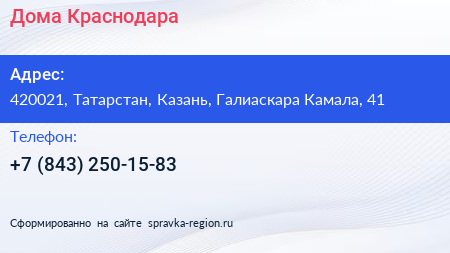 Дома Краснодара по адресу 420021, Татарстан, Казань, Галиаскара Камала, 41 в дальнейшем Организация, размещена в следующих категориях: