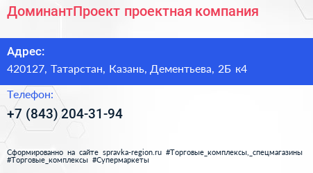 ДоминантПроект, проектная компания по адресу 420127, Татарстан, Казань, Дементьева, 2Б к4 в дальнейшем Организация, размещена в следующих категориях: