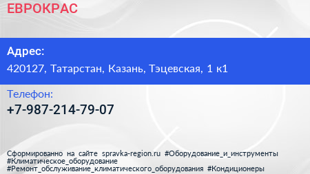 ЕВРОКРАС по адресу 420127, Татарстан, Казань, Тэцевская, 1 к1 в дальнейшем Организация, размещена в следующих категориях:
