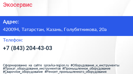 Экосервис по адресу 420094, Татарстан, Казань, Голубятникова, 20а в дальнейшем Организация, размещена в следующих категориях: