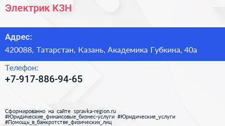 Электрик КЗН по адресу 420088, Татарстан, Казань, Академика Губкина, 40а в дальнейшем Организация, размещена в следующих категориях: