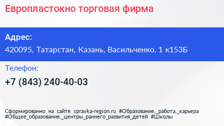 Европластокно, торговая фирма по адресу 420095, Татарстан, Казань, Васильченко, 1 к153Б в дальнейшем Организация, размещена в следующих категориях:
