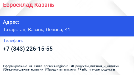 Евросклад-Казань по адресу Татарстан, Казань, Ленина, 41 в дальнейшем Организация, размещена в следующих категориях: