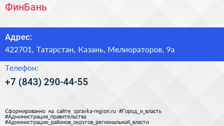 ФинБань по адресу 422701, Татарстан, Казань, Мелиораторов, 9а в дальнейшем Организация, размещена в следующих категориях: