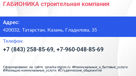 ГАБИОНИКА, строительная компания по адресу 420032, Татарстан, Казань, Гладилова, 35 в дальнейшем Организация, размещена в следующих категориях: