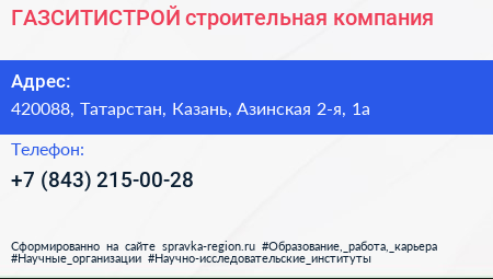 ГАЗСИТИСТРОЙ, строительная компания по адресу 420088, Татарстан, Казань, Азинская 2-я, 1а в дальнейшем Организация, размещена в следующих категориях: