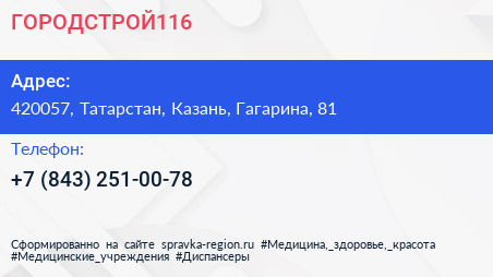 ГОРОДСТРОЙ116 по адресу 420057, Татарстан, Казань, Гагарина, 81 в дальнейшем Организация, размещена в следующих категориях: