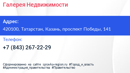 Галерея Недвижимости по адресу 420100, Татарстан, Казань, проспект Победы, 141 в дальнейшем Организация, размещена в следующих категориях: