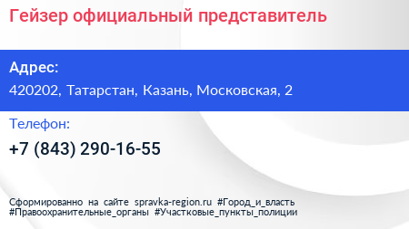 Гейзер, официальный представитель по адресу 420202, Татарстан, Казань, Московская, 2 в дальнейшем Организация, размещена в следующих категориях: