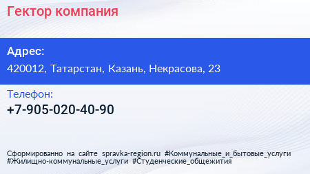 Гектор, компания по адресу 420012, Татарстан, Казань, Некрасова, 23 в дальнейшем Организация, размещена в следующих категориях: