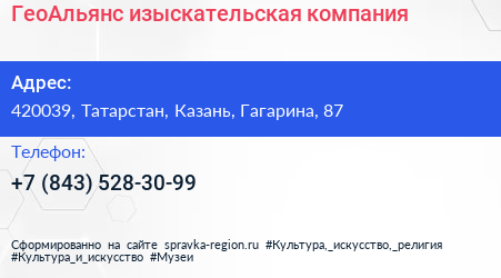 ГеоАльянс, изыскательская компания по адресу 420039, Татарстан, Казань, Гагарина, 87 в дальнейшем Организация, размещена в следующих категориях: