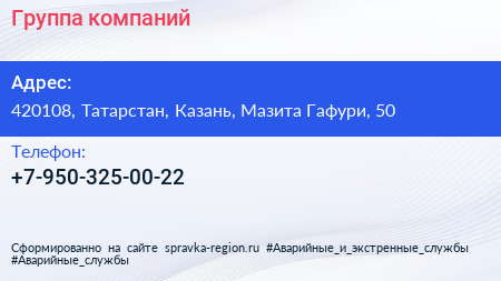 Группа компаний по адресу 420108, Татарстан, Казань, Мазита Гафури, 50 в дальнейшем Организация, размещена в следующих категориях: