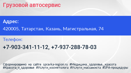 Грузовой автосервис по адресу 420005, Татарстан, Казань, Магистральная, 74 в дальнейшем Организация, размещена в следующих категориях: