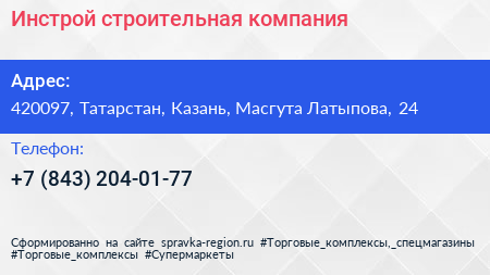 Инстрой, строительная компания по адресу 420097, Татарстан, Казань, Масгута Латыпова, 24 в дальнейшем Организация, размещена в следующих категориях:
