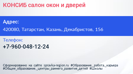 КОНСИБ, салон окон и дверей по адресу 420080, Татарстан, Казань, Декабристов, 156 в дальнейшем Организация, размещена в следующих категориях: