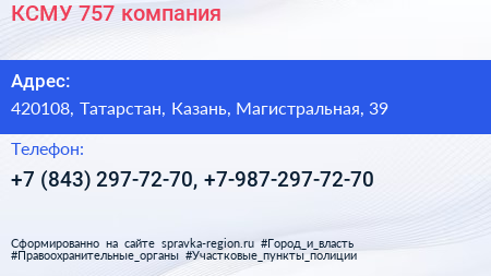 КСМУ-757, компания по адресу 420108, Татарстан, Казань, Магистральная, 39 в дальнейшем Организация, размещена в следующих категориях: