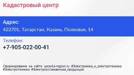 Кадастровый центр по адресу 422701, Татарстан, Казань, Полковая, 14 в дальнейшем Организация, размещена в следующих категориях: